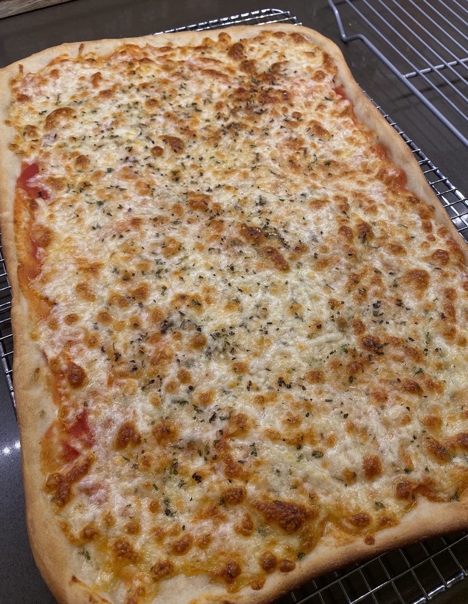 Slice and serve however your heart desires. This pizza reheats wonderfully for lunch the next day. Set the oven to 450* F, place the pieces you’d like on a baking sheet and set a time for 5 minutes. I even reheat my pizza in the air fryer and that does just fine.